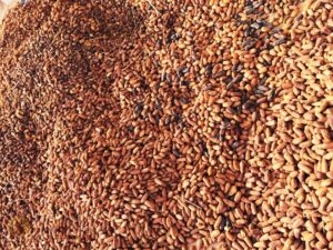 لكن الفرق انه فى القمح تقوم الآلة ( الحصادة) بكل العمليات اما بالنسبة للفول فلا زال القطع يدوي اما الدق يتم بالآلة كما ذُكر سابقاً